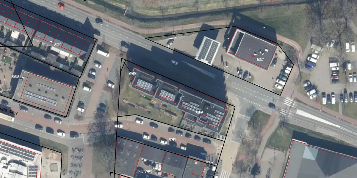 Het perceel waarop De Oude Werf 56 staat heeft een oppervlakte van 1588 m². Dit is een zeer groot perceel. De perceeloppervlakte wordt geregistreerd door het Kadaster. Gedetailleerde informatie over de maten van dit perceel kunt u vinden in het rapport Kadastrale kaart met maatvoering van De Oude Werf 56.