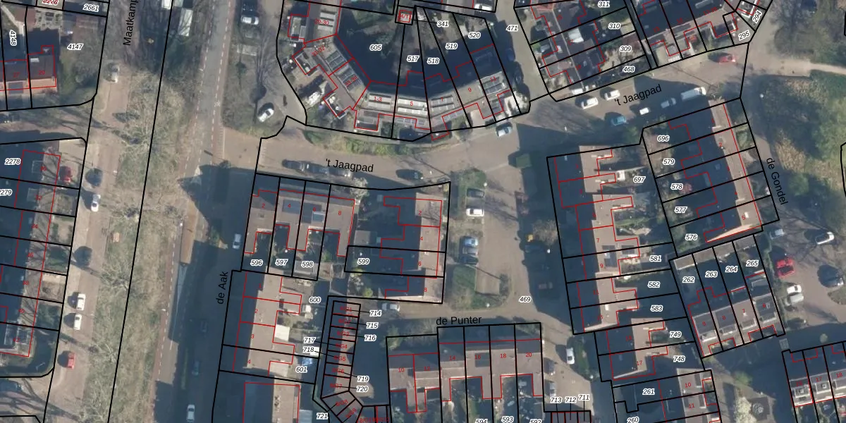 Het perceel waarop de Punter 2 staat heeft een oppervlakte van 1035 m². Dit is een zeer groot perceel. De perceeloppervlakte wordt geregistreerd door het Kadaster. Gedetailleerde informatie over de maten van dit perceel kunt u vinden in het rapport Kadastrale kaart met maatvoering van de Punter 2.