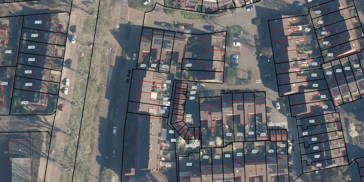 Het perceel waarop de Punter 8-G2 staat heeft een oppervlakte van 18 m². Dit is een klein perceel. De perceeloppervlakte wordt geregistreerd door het Kadaster. Gedetailleerde informatie over de maten van dit perceel kunt u vinden in het rapport Kadastrale kaart met maatvoering van de Punter 8-G2.