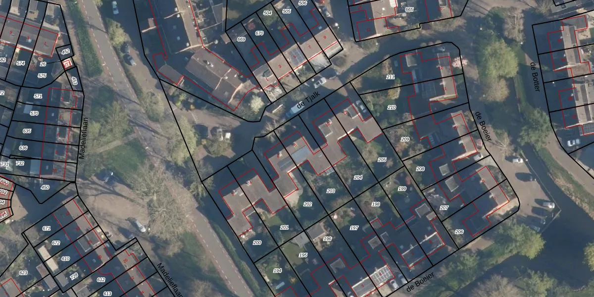 Het perceel waarop de Tjalk 8 staat heeft een oppervlakte van 340 m². Dit is een groot perceel. De perceeloppervlakte wordt geregistreerd door het Kadaster. Gedetailleerde informatie over de maten van dit perceel kunt u vinden in het rapport Kadastrale kaart met maatvoering van de Tjalk 8.