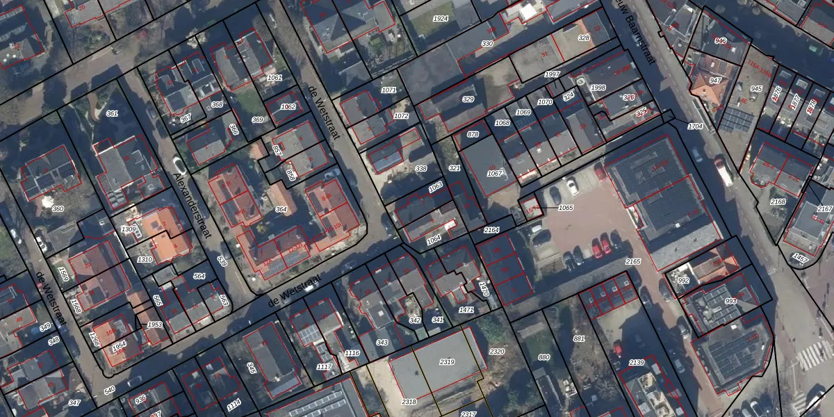 Gebruik de zoekbalk of klik op een perceel voor informatie over de adressen binnen dit perceel.