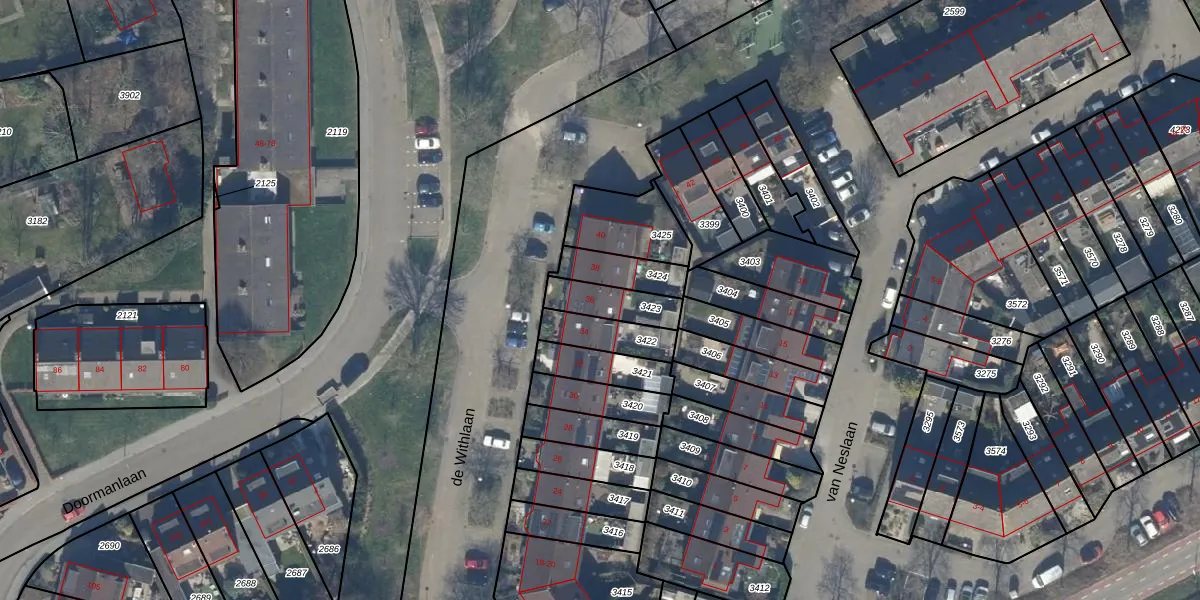 Gebruik de zoekbalk of klik op een perceel voor informatie over de adressen binnen dit perceel.
