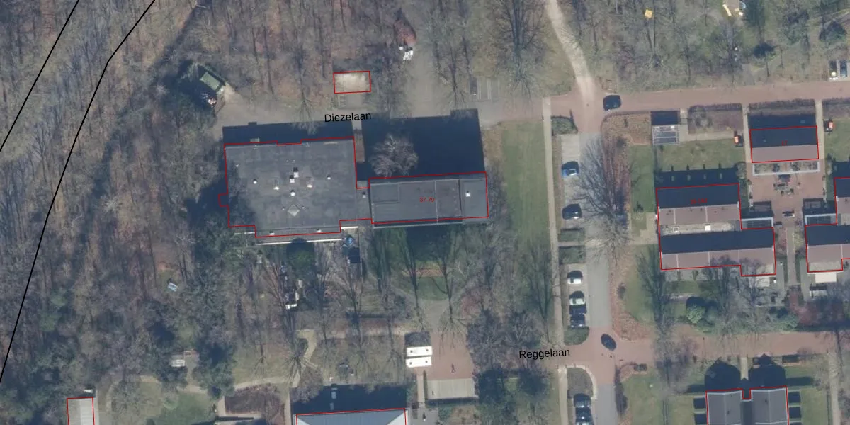 Het perceel waarop Diezelaan 45 staat heeft een oppervlakte van 24,2 ha. Dit is een zeer groot perceel. De perceeloppervlakte wordt geregistreerd door het Kadaster. Gedetailleerde informatie over de maten van dit perceel kunt u vinden in het rapport Kadastrale kaart met maatvoering van Diezelaan 45.