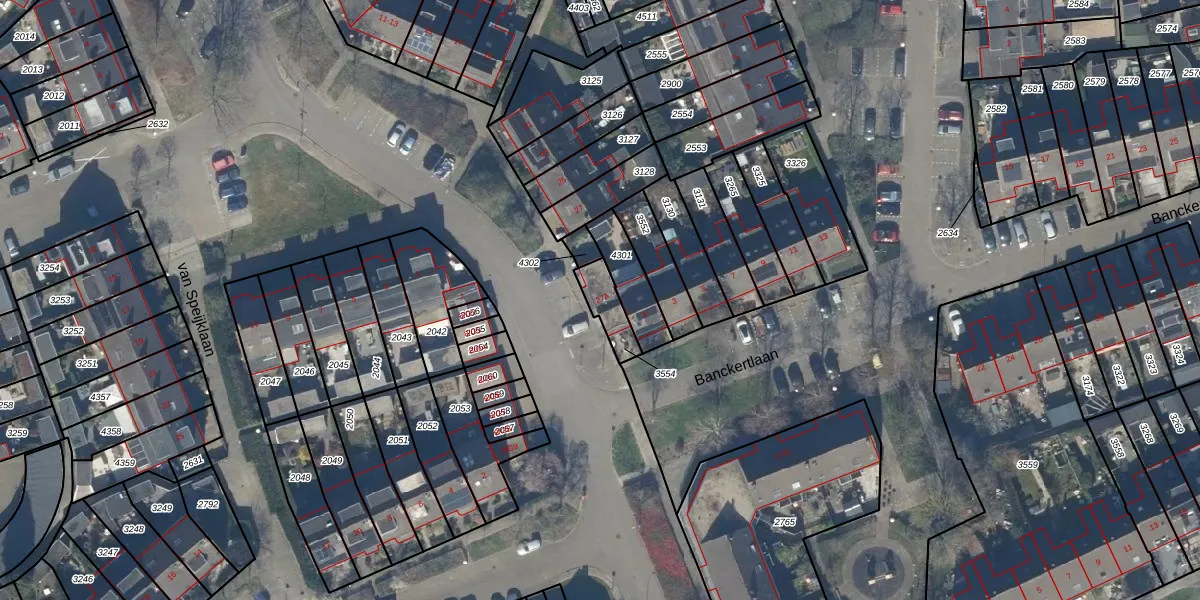 Gebruik de zoekbalk of klik op een perceel voor informatie over de adressen binnen dit perceel.