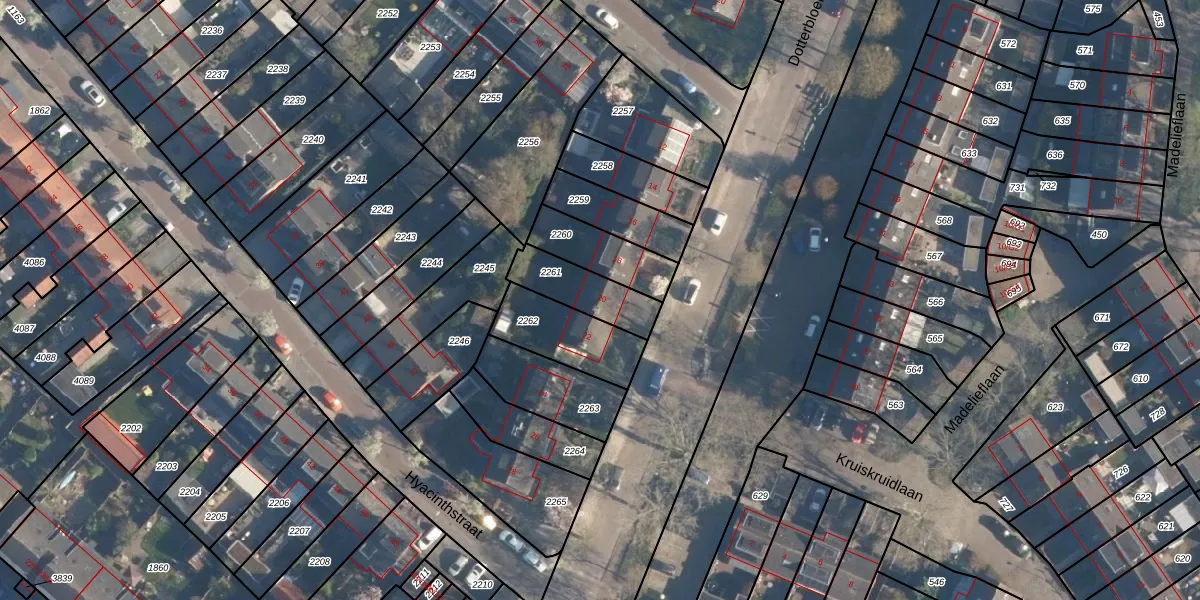 Het perceel waarop Dotterbloemlaan 20 staat heeft een oppervlakte van 172 m². Dit is een middelgroot perceel. De perceeloppervlakte wordt geregistreerd door het Kadaster. Gedetailleerde informatie over de maten van dit perceel kunt u vinden in het rapport Kadastrale kaart met maatvoering van Dotterbloemlaan 20.