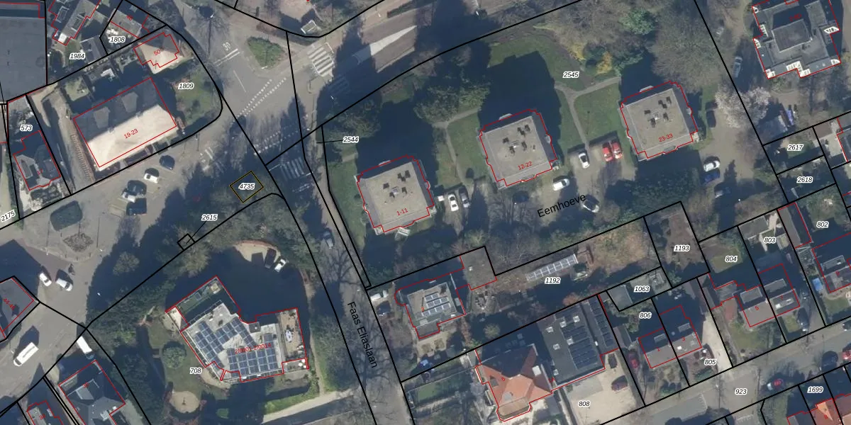 Eemhoeve 1 is gelegen op kadastraal perceel BAA01M2545. Deze kadastrale aanduiding is uniek en wordt gebruikt door het Kadaster om eigendomsrechten en andere zakelijke rechten vast te leggen. Het perceel maakt onderdeel uit van de kadastrale gemeente Baarn.