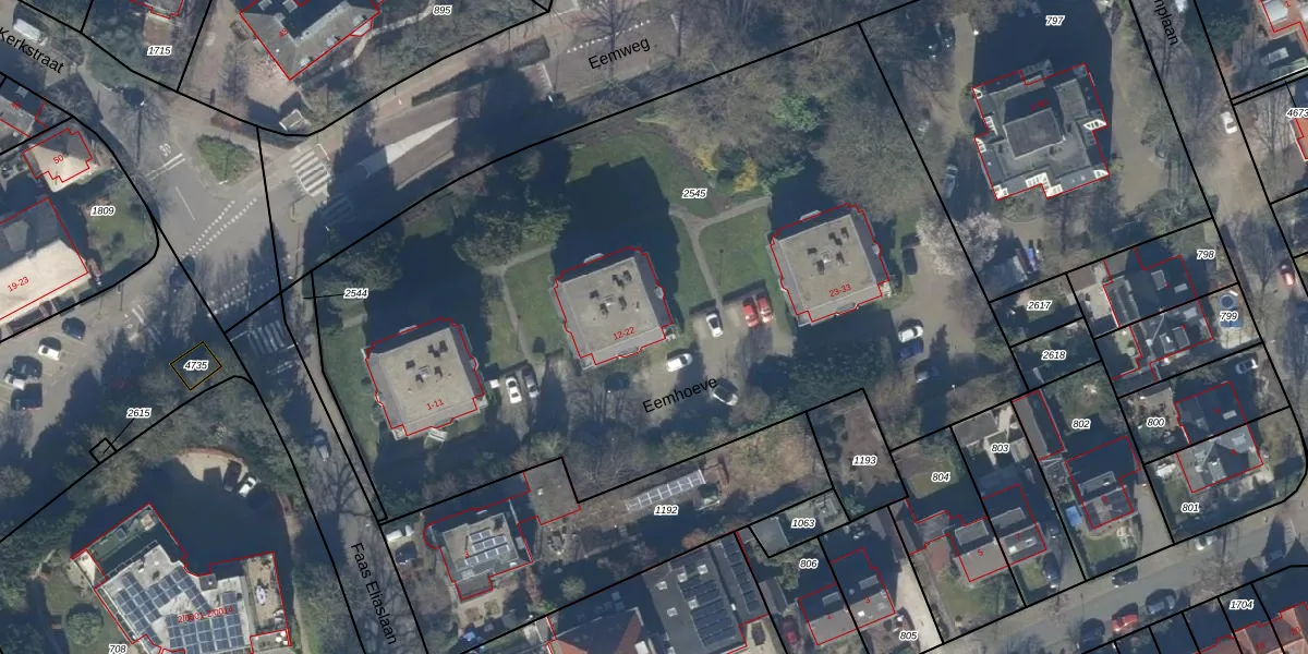 Eemhoeve 14 is gelegen op kadastraal perceel BAA01M2545. Deze kadastrale aanduiding is uniek en wordt gebruikt door het Kadaster om eigendomsrechten en andere zakelijke rechten vast te leggen. Het perceel maakt onderdeel uit van de kadastrale gemeente Baarn.