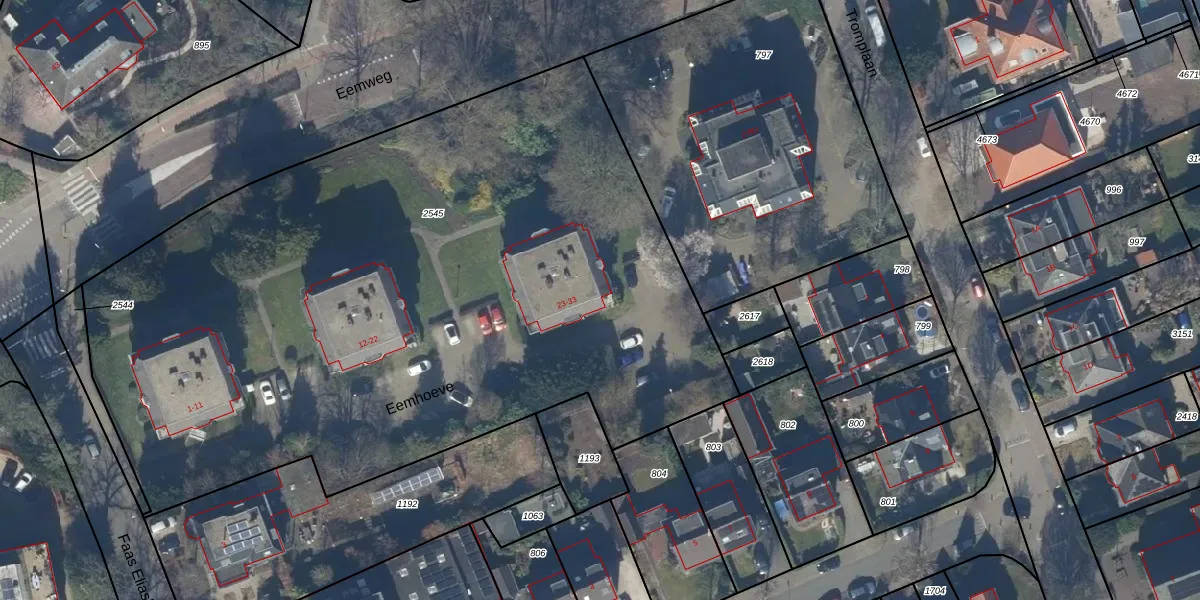 Eemhoeve 23 is gelegen op kadastraal perceel BAA01M2545. Deze kadastrale aanduiding is uniek en wordt gebruikt door het Kadaster om eigendomsrechten en andere zakelijke rechten vast te leggen. Het perceel maakt onderdeel uit van de kadastrale gemeente Baarn.