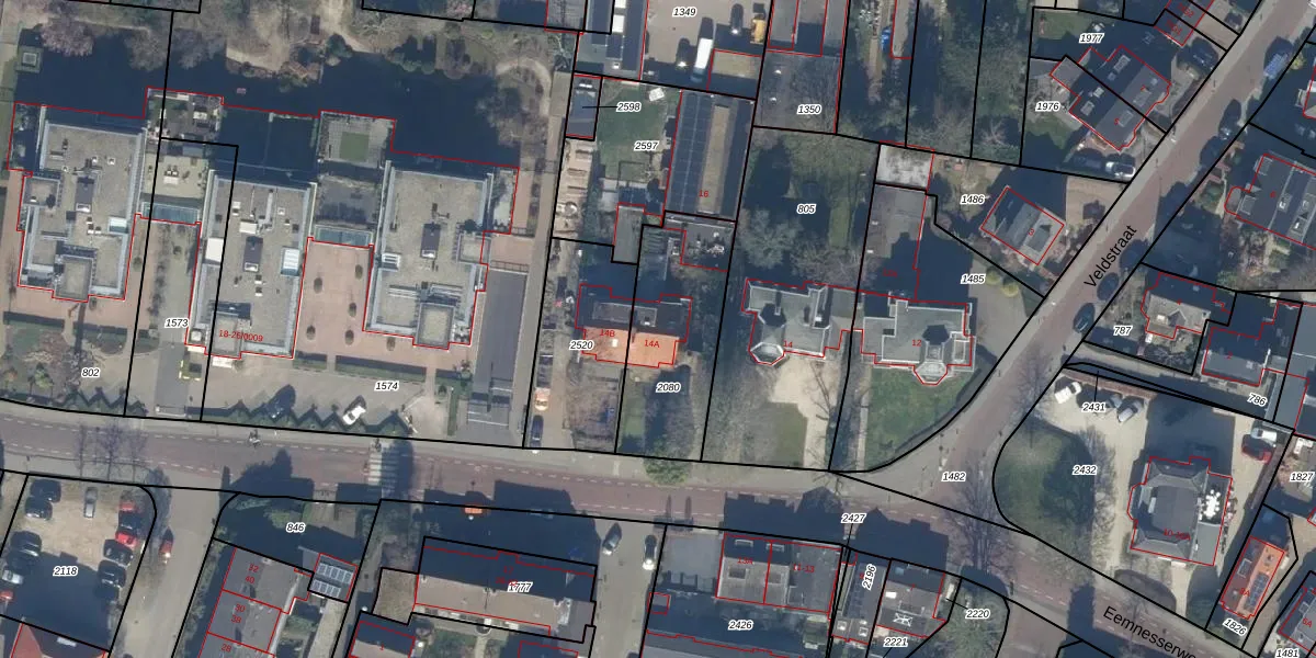 Het perceel waarop Eemnesserweg 14-A staat heeft een oppervlakte van 502 m². Dit is een groot perceel. De perceeloppervlakte wordt geregistreerd door het Kadaster. Gedetailleerde informatie over de maten van dit perceel kunt u vinden in het rapport Kadastrale kaart met maatvoering van Eemnesserweg 14-A.