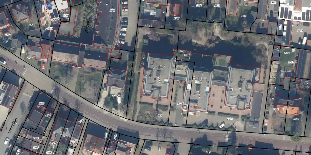 Het perceel waarop het adres ligt is BAA01-L-802. De afkorting 'BAA01' staat voor kadastrale gemeente Baarn. De gemiddelde perceelgrootte in Baarn is 3286,82 m². Dit perceel is kleiner: de perceeloppervlakte bedraagt 1676 m². Het kleinste perceel in de kadastrale gemeente is 0 m² groot. De grootste perceeloppervlakte is 84,4 ha. Op het perceel liggen in totaal 10 adressen. In de Basisregistratie Kadaster (BRK) werden de grenzen van het perceel geregistreerd op 19-10-2005.