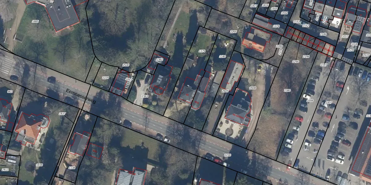 Het perceel waarop Eemnesserweg 48 staat heeft een oppervlakte van 616 m². Dit is een groot perceel. De perceeloppervlakte wordt geregistreerd door het Kadaster. Gedetailleerde informatie over de maten van dit perceel kunt u vinden in het rapport Kadastrale kaart met maatvoering van Eemnesserweg 48.