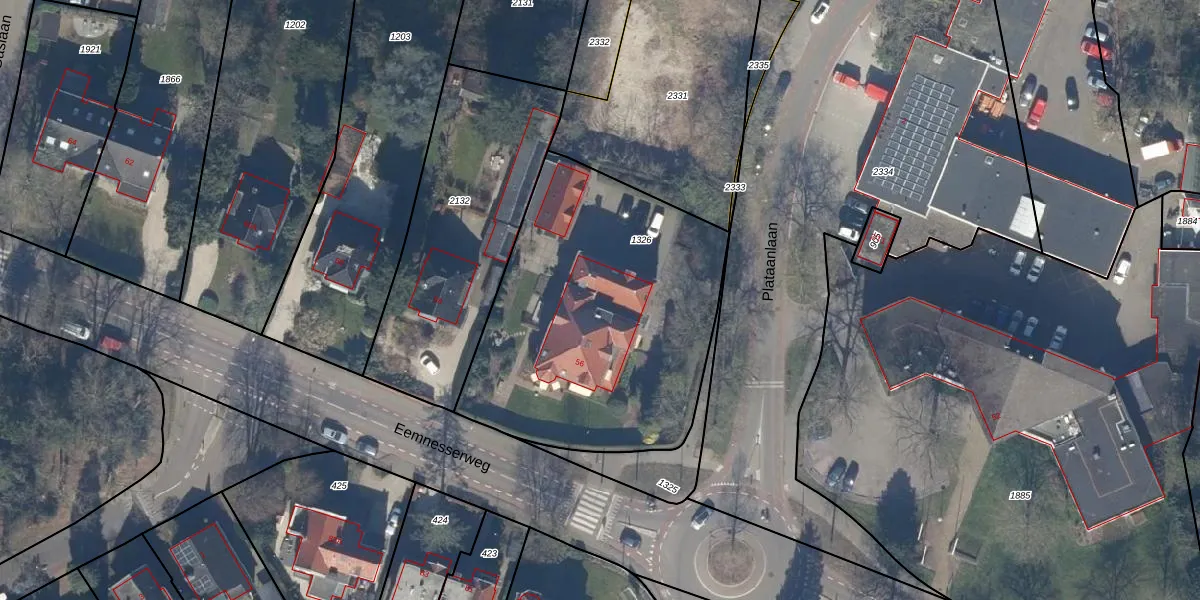 Eemnesserweg 56 is gelegen op kadastraal perceel BAA01K1326. Deze kadastrale aanduiding is uniek en wordt gebruikt door het Kadaster om eigendomsrechten en andere zakelijke rechten vast te leggen. Het perceel maakt onderdeel uit van de kadastrale gemeente Baarn.