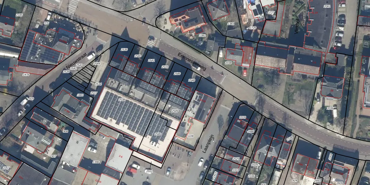 Gebruik de zoekbalk of klik op een perceel voor informatie over de adressen binnen dit perceel.