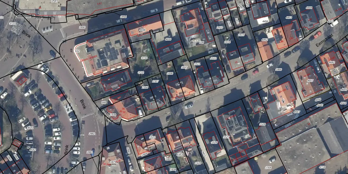 Gebruik de zoekbalk of klik op een perceel voor informatie over de adressen binnen dit perceel.