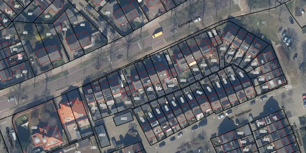 Gebruik de zoekbalk of klik op een perceel voor informatie over de adressen binnen dit perceel.