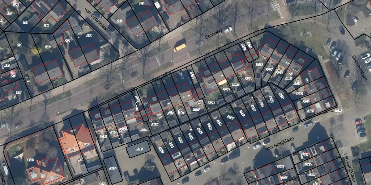Het perceel waarop Eemweg 24 staat heeft een oppervlakte van 261 m². Dit is een middelgroot perceel. De perceeloppervlakte wordt geregistreerd door het Kadaster. Gedetailleerde informatie over de maten van dit perceel kunt u vinden in het rapport Kadastrale kaart met maatvoering van Eemweg 24.