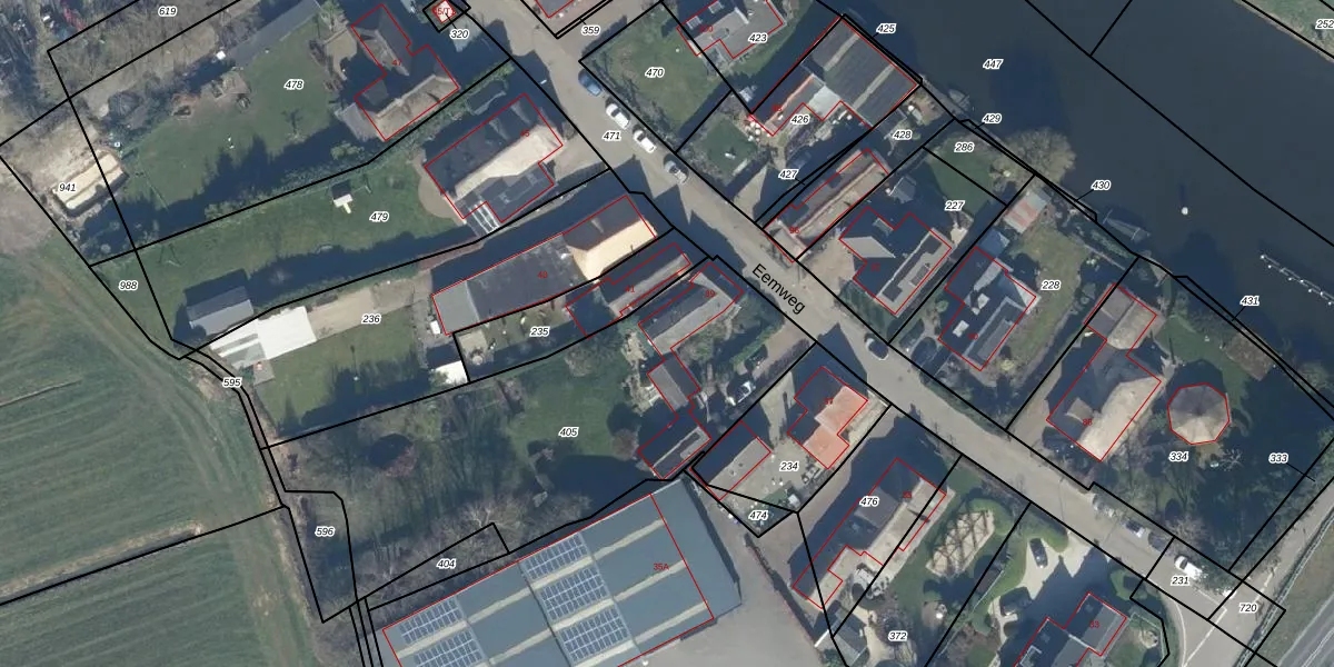 Het perceel waarop Eemweg 39 staat heeft een oppervlakte van 1745 m². Dit is een zeer groot perceel. De perceeloppervlakte wordt geregistreerd door het Kadaster. Gedetailleerde informatie over de maten van dit perceel kunt u vinden in het rapport Kadastrale kaart met maatvoering van Eemweg 39.