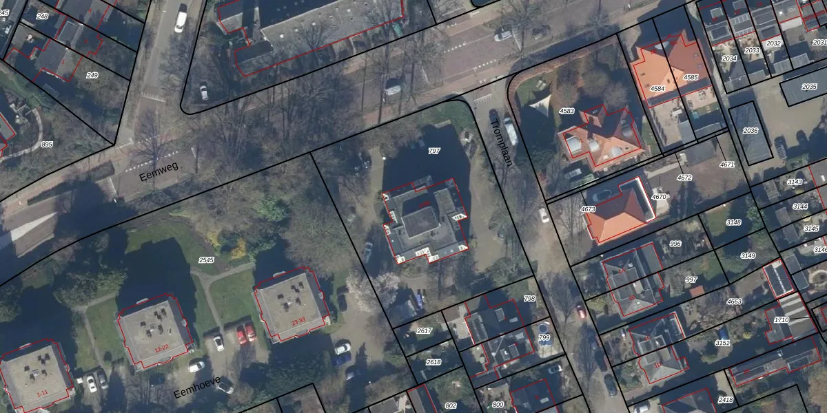 Het perceel waarop Eemweg 4-A staat heeft een oppervlakte van 1790 m². Dit is een zeer groot perceel. De perceeloppervlakte wordt geregistreerd door het Kadaster. Gedetailleerde informatie over de maten van dit perceel kunt u vinden in het rapport Kadastrale kaart met maatvoering van Eemweg 4-A.