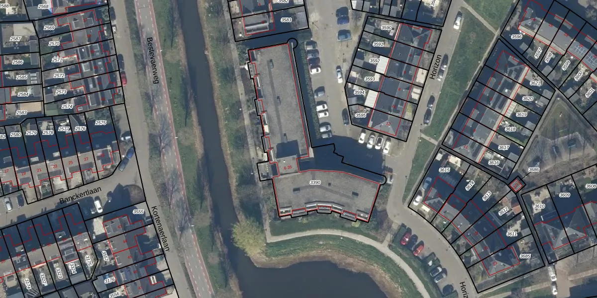 Het perceel waarop het adres ligt is BAA01-M-3390. De afkorting 'BAA01' staat voor kadastrale gemeente Baarn. Het perceel is kleiner dan gemiddeld in Baarn. Het perceel is 1291 m² groot, terwijl het gemiddelde ligt op 3282,24 m². Het grootste perceel in de kadastrale gemeente is 84,4 ha. Het kleinste perceel heeft een oppervlakte van 0 m². Op het perceel zijn 30 adressen aanwezig. In de Basisregistratie Kadaster (BRK) werden de grenzen van het perceel geregistreerd op 09-06-2004.