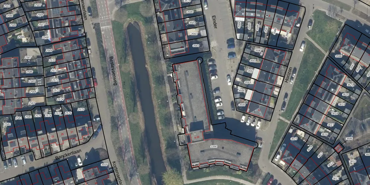 Het perceel waarop Einder 27 staat heeft een oppervlakte van 1291 m². Dit is een zeer groot perceel. De perceeloppervlakte wordt geregistreerd door het Kadaster. Gedetailleerde informatie over de maten van dit perceel kunt u vinden in het rapport Kadastrale kaart met maatvoering van Einder 27.