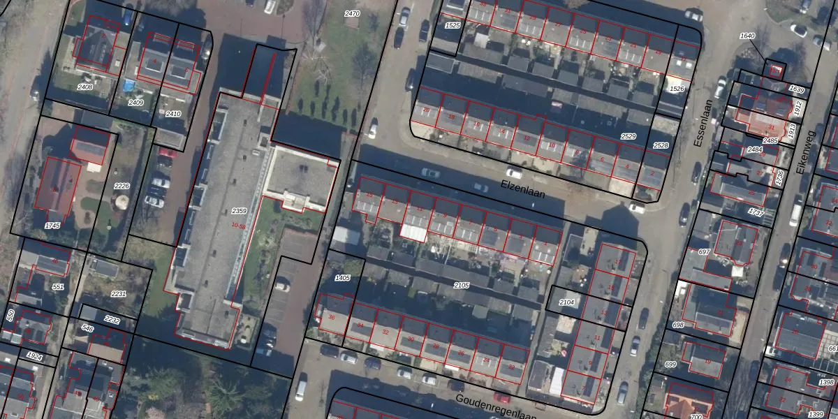 Het perceel waarop Elzenlaan 11 staat heeft een oppervlakte van 2891 m². Dit is een zeer groot perceel. De perceeloppervlakte wordt geregistreerd door het Kadaster. Gedetailleerde informatie over de maten van dit perceel kunt u vinden in het rapport Kadastrale kaart met maatvoering van Elzenlaan 11.