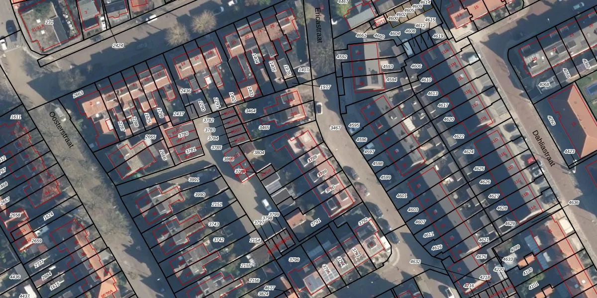 Gebruik de zoekbalk of klik op een perceel voor informatie over de adressen binnen dit perceel.