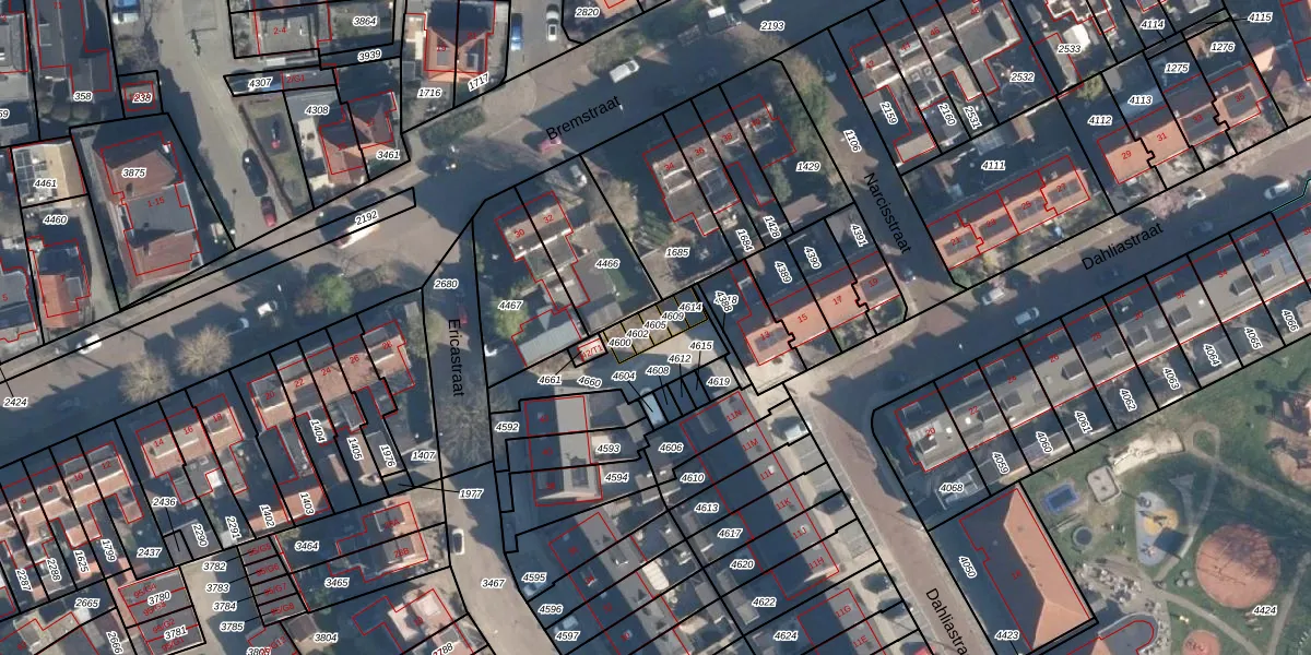 Ericastraat 42-G3 is gelegen op kadastraal perceel BAA01M4605. Deze kadastrale aanduiding is uniek en wordt gebruikt door het Kadaster om eigendomsrechten en andere zakelijke rechten vast te leggen. Het perceel maakt onderdeel uit van de kadastrale gemeente Baarn.