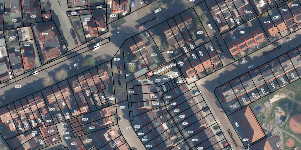 Ericastraat 42-T1 is gelegen op kadastraal perceel BAA01M4661. Deze kadastrale aanduiding is uniek en wordt gebruikt door het Kadaster om eigendomsrechten en andere zakelijke rechten vast te leggen. Het perceel maakt onderdeel uit van de kadastrale gemeente Baarn.