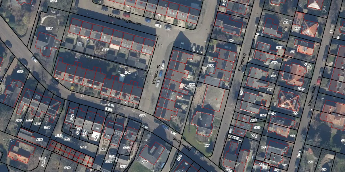 Het perceel waarop Essenlaan 8 staat heeft een oppervlakte van 860 m². Dit is een groot perceel. De perceeloppervlakte wordt geregistreerd door het Kadaster. Gedetailleerde informatie over de maten van dit perceel kunt u vinden in het rapport Kadastrale kaart met maatvoering van Essenlaan 8.