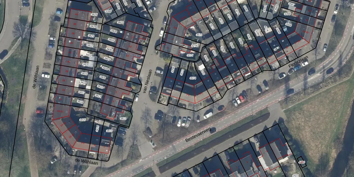 Het perceel waarop Floriszlaan 2 staat heeft een oppervlakte van 137 m². Dit is een middelgroot perceel. De perceeloppervlakte wordt geregistreerd door het Kadaster. Gedetailleerde informatie over de maten van dit perceel kunt u vinden in het rapport Kadastrale kaart met maatvoering van Floriszlaan 2.