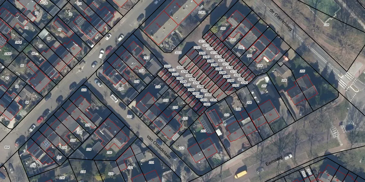 Het perceel waarop het adres ligt is BAA01-H-3307. De afkorting 'BAA01' staat voor kadastrale gemeente Baarn. Het perceel is 17 m² groot. Dat is kleiner dan de gemiddelde perceeloppervlakte in Baarn, dat op 3281,59 m² ligt. De grootste perceeloppervlakte in de kadastrale gemeente is 84,4 ha. De kleinste oppervlakte bedraagt 0 m². Dit is het enige adres dat aanwezig is op het perceel. De huidige grenzen van het perceel zijn digitaal in de Basisregistratie Kadaster (BRK) geregistreerd op 07-01-2022.
