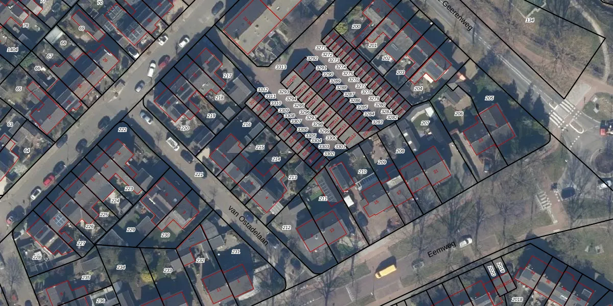 Het perceel waarop het adres ligt is BAA01-H-3304. De afkorting 'BAA01' staat voor kadastrale gemeente Baarn. Het perceel is 17 m² groot. Dat is kleiner dan de gemiddelde perceeloppervlakte in Baarn, dat op 3281,59 m² ligt. De grootste perceeloppervlakte in de kadastrale gemeente is 84,4 ha. De kleinste oppervlakte bedraagt 0 m². Er zijn geen andere adressen aanwezig op het perceel. De huidige grenzen van het perceel zijn digitaal in de Basisregistratie Kadaster (BRK) geregistreerd op 07-01-2022.