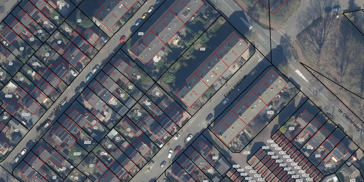 Het perceel waarop Frans Halslaan 41 staat heeft een oppervlakte van 1448 m². Dit is een zeer groot perceel. De perceeloppervlakte wordt geregistreerd door het Kadaster. Gedetailleerde informatie over de maten van dit perceel kunt u vinden in het rapport Kadastrale kaart met maatvoering van Frans Halslaan 41.
