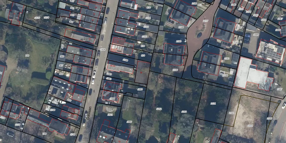 Gebruik de zoekbalk of klik op een perceel voor informatie over de adressen binnen dit perceel.