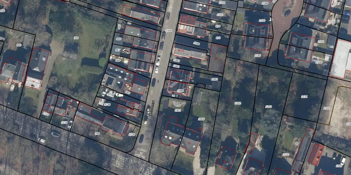 Het perceel waarop Gaslaan 2 staat heeft een oppervlakte van 181 m². Dit is een middelgroot perceel. De perceeloppervlakte wordt geregistreerd door het Kadaster. Gedetailleerde informatie over de maten van dit perceel kunt u vinden in het rapport Kadastrale kaart met maatvoering van Gaslaan 2.