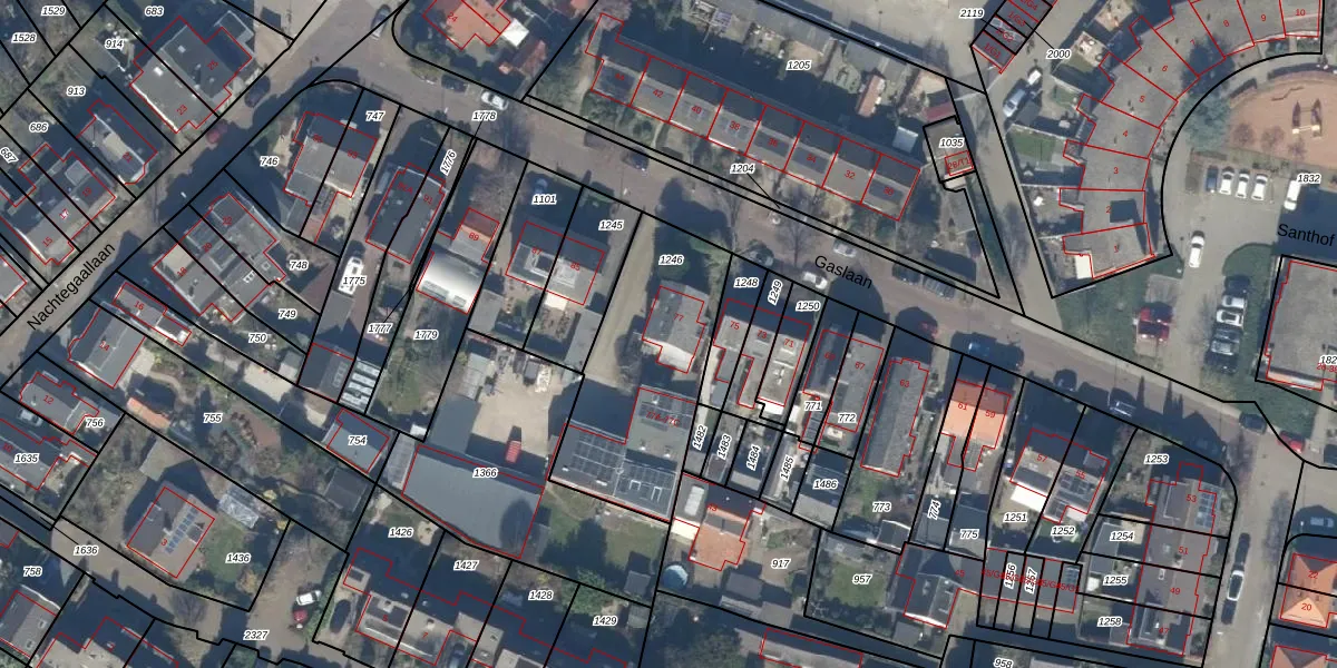 Het perceel waarop Gaslaan 77 staat heeft een oppervlakte van 711 m². Dit is een groot perceel. De perceeloppervlakte wordt geregistreerd door het Kadaster. Gedetailleerde informatie over de maten van dit perceel kunt u vinden in het rapport Kadastrale kaart met maatvoering van Gaslaan 77.