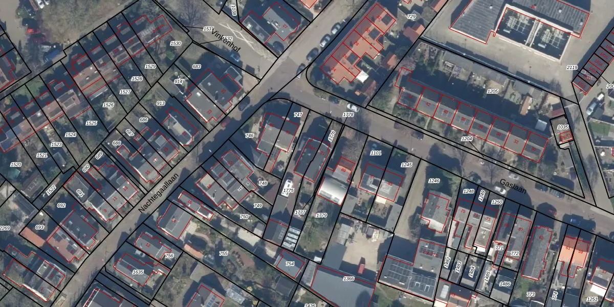 Gebruik de zoekbalk of klik op een perceel voor informatie over de adressen binnen dit perceel.