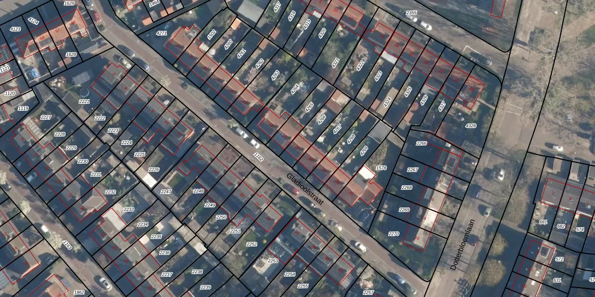 Gebruik de zoekbalk of klik op een perceel voor informatie over de adressen binnen dit perceel.