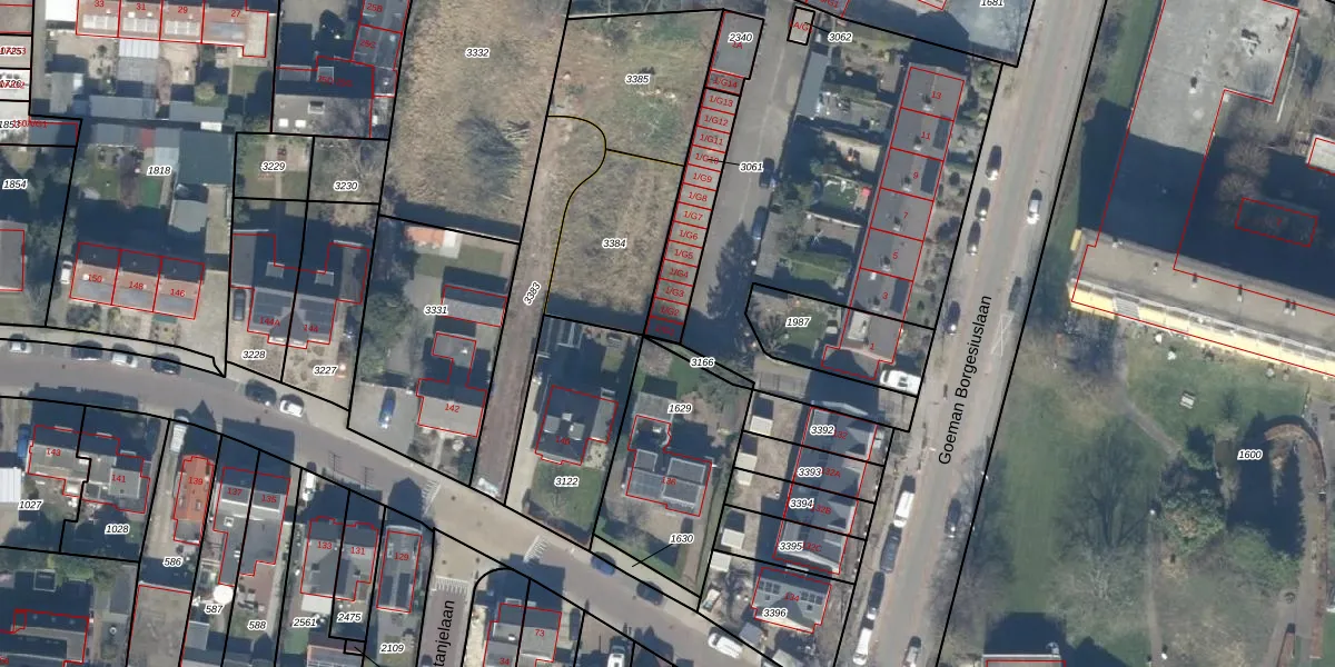 Goeman Borgesiuslaan 1-G1 is gelegen op kadastraal perceel BAA01H3061. Deze kadastrale aanduiding is uniek en wordt gebruikt door het Kadaster om eigendomsrechten en andere zakelijke rechten vast te leggen. Het perceel maakt onderdeel uit van de kadastrale gemeente Baarn.