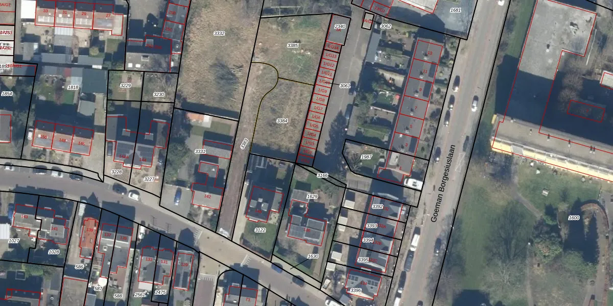 Goeman Borgesiuslaan 1-G2 is gelegen op kadastraal perceel BAA01H3061. Deze kadastrale aanduiding is uniek en wordt gebruikt door het Kadaster om eigendomsrechten en andere zakelijke rechten vast te leggen. Het perceel maakt onderdeel uit van de kadastrale gemeente Baarn.