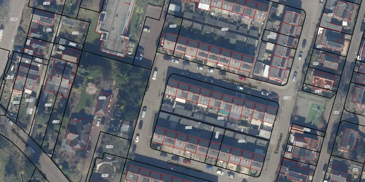 Goudenregenlaan 33 is gelegen op kadastraal perceel BAA01L1529. Deze kadastrale aanduiding is uniek en wordt gebruikt door het Kadaster om eigendomsrechten en andere zakelijke rechten vast te leggen. Het perceel maakt onderdeel uit van de kadastrale gemeente Baarn.