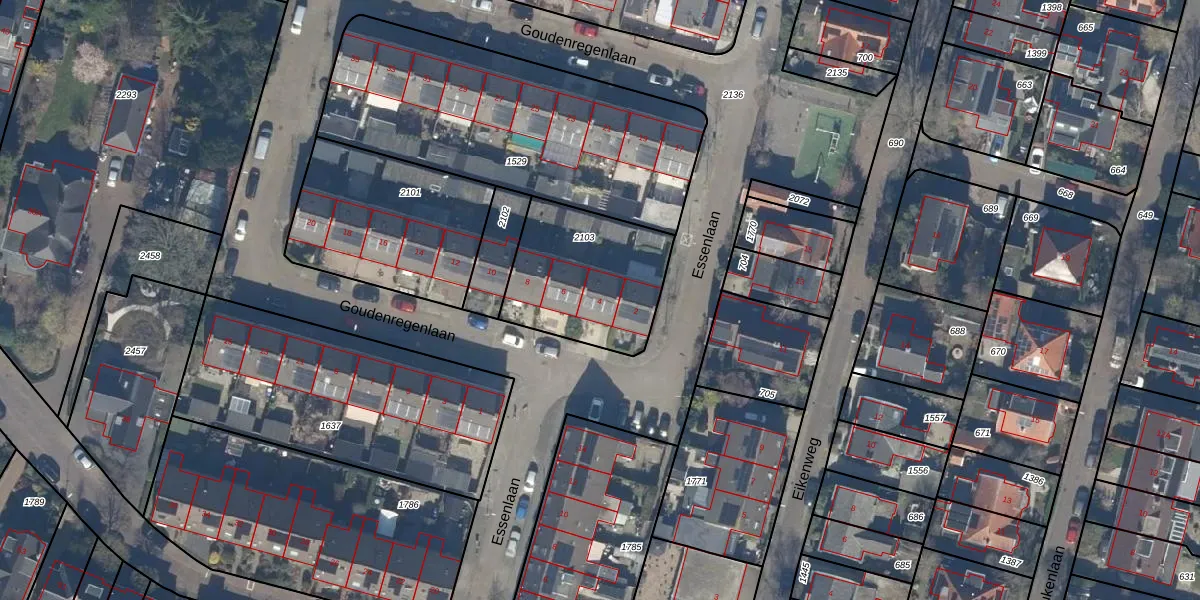 Goudenregenlaan 4 is gelegen op kadastraal perceel BAA01L2103. Deze kadastrale aanduiding is uniek en wordt gebruikt door het Kadaster om eigendomsrechten en andere zakelijke rechten vast te leggen. Het perceel maakt onderdeel uit van de kadastrale gemeente Baarn.