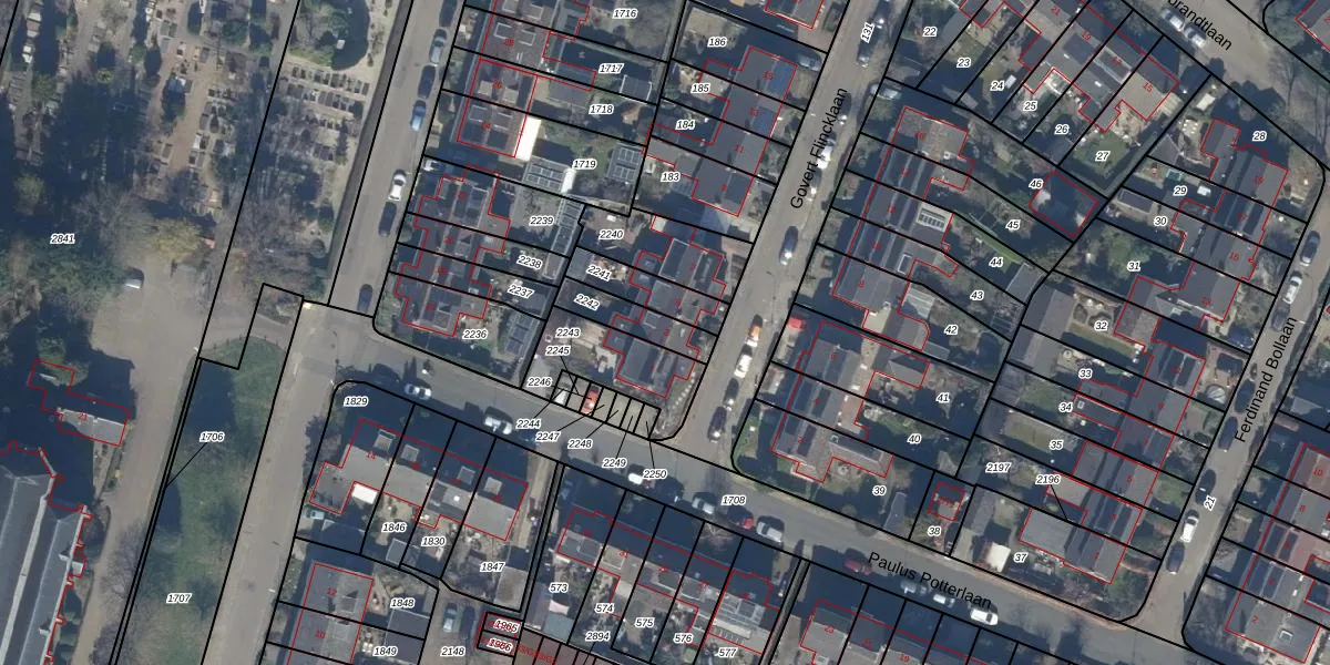 Gebruik de zoekbalk of klik op een perceel voor informatie over de adressen binnen dit perceel.