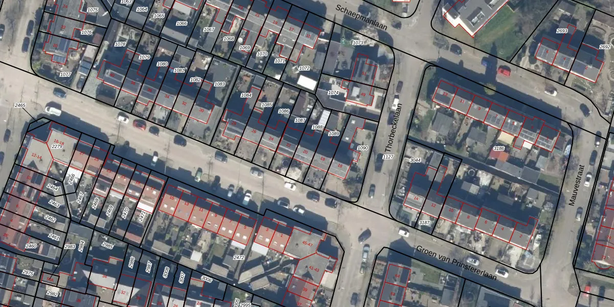 Gebruik de zoekbalk of klik op een perceel voor informatie over de adressen binnen dit perceel.