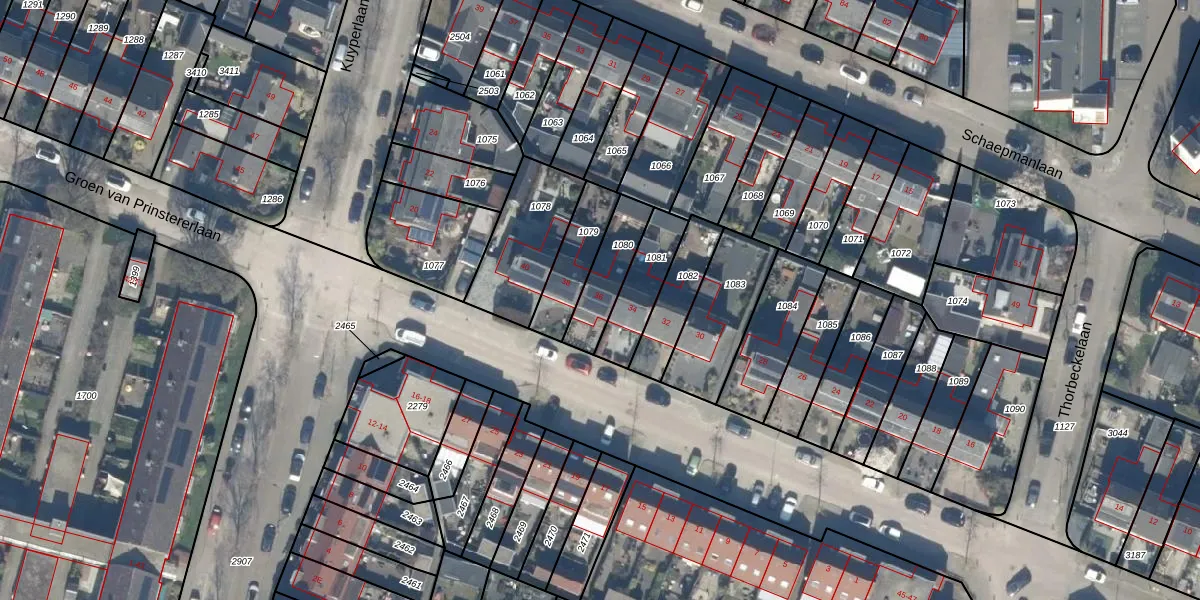 Gebruik de zoekbalk of klik op een perceel voor informatie over de adressen binnen dit perceel.