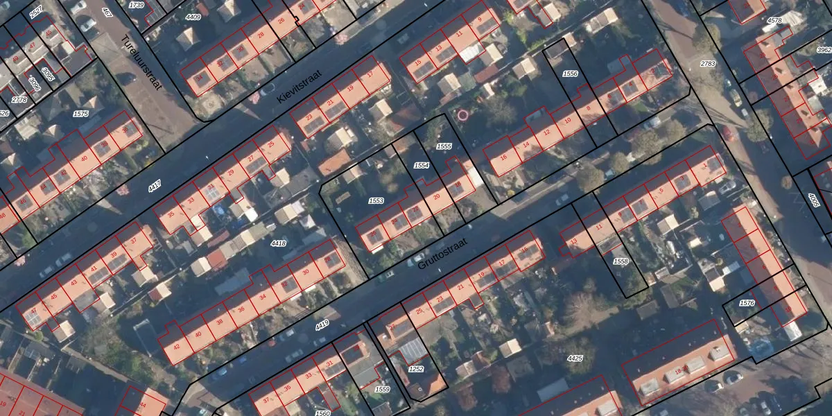 Het perceel waarop Gruttostraat 22 staat heeft een oppervlakte van 532 m². Dit is een groot perceel. De perceeloppervlakte wordt geregistreerd door het Kadaster. Gedetailleerde informatie over de maten van dit perceel kunt u vinden in het rapport Kadastrale kaart met maatvoering van Gruttostraat 22.