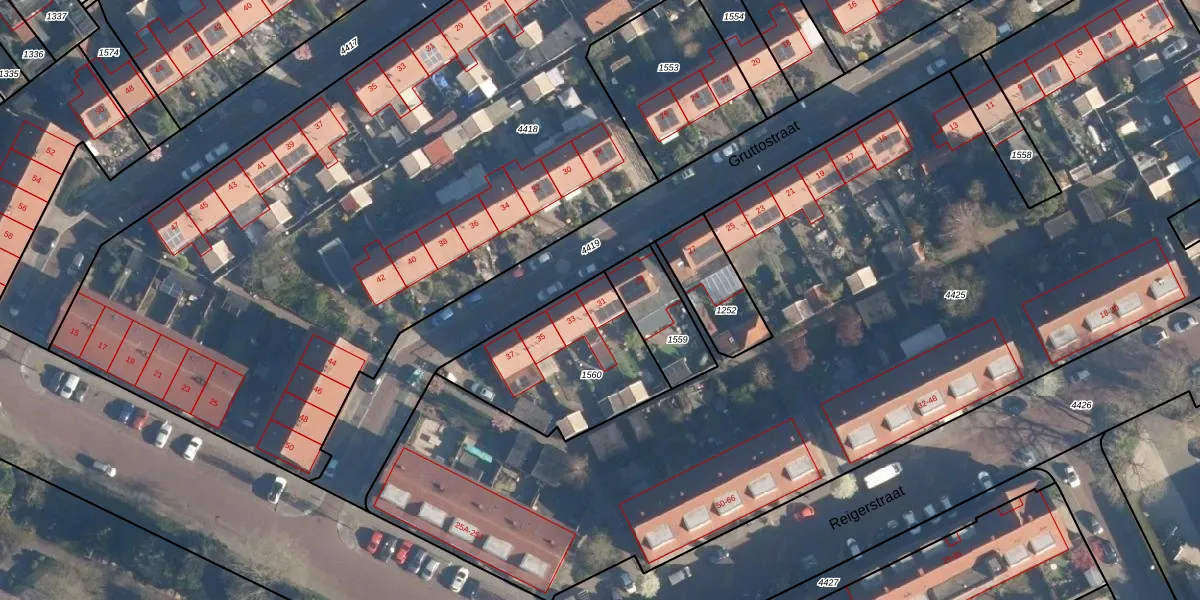 Het perceel waarop Gruttostraat 31 staat heeft een oppervlakte van 652 m². Dit is een groot perceel. De perceeloppervlakte wordt geregistreerd door het Kadaster. Gedetailleerde informatie over de maten van dit perceel kunt u vinden in het rapport Kadastrale kaart met maatvoering van Gruttostraat 31.