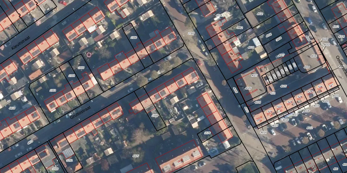Het perceel waarop Gruttostraat 5 staat heeft een oppervlakte van 6215 m². Dit is een zeer groot perceel. De perceeloppervlakte wordt geregistreerd door het Kadaster. Gedetailleerde informatie over de maten van dit perceel kunt u vinden in het rapport Kadastrale kaart met maatvoering van Gruttostraat 5.