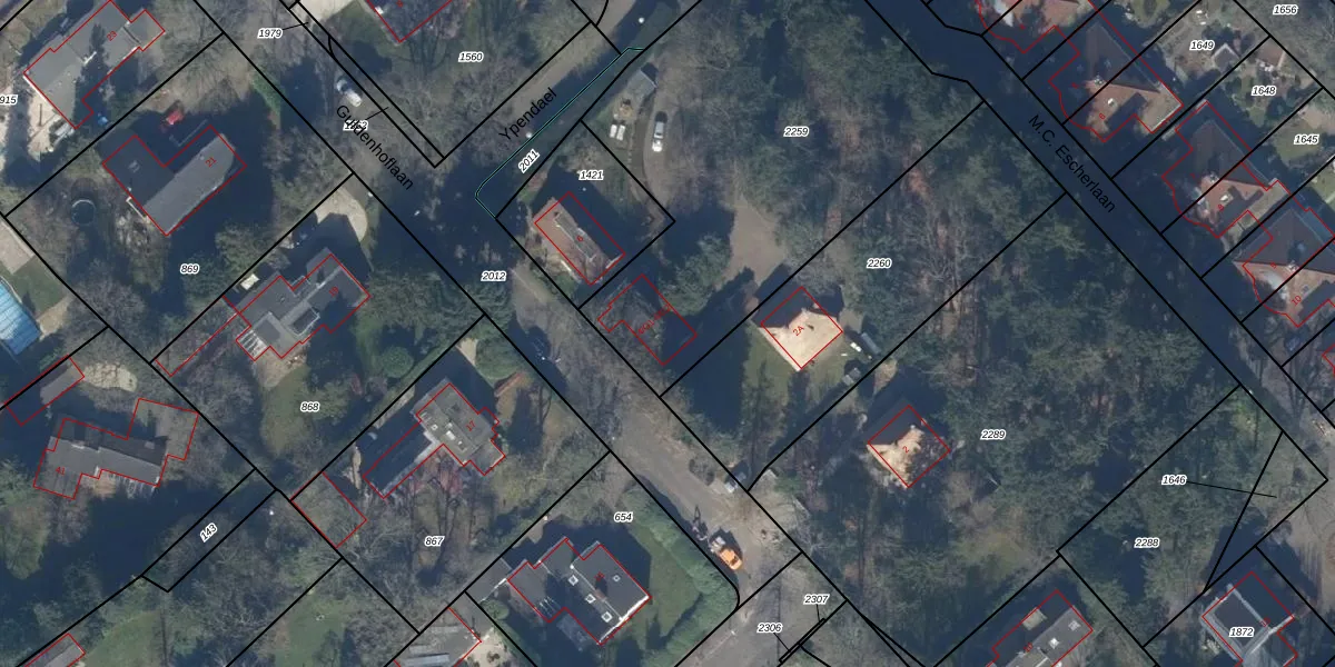 Het perceel waarop Guldenhoflaan 4-G1 staat heeft een oppervlakte van 2080 m². Dit is een zeer groot perceel. De perceeloppervlakte wordt geregistreerd door het Kadaster. Gedetailleerde informatie over de maten van dit perceel kunt u vinden in het rapport Kadastrale kaart met maatvoering van Guldenhoflaan 4-G1.