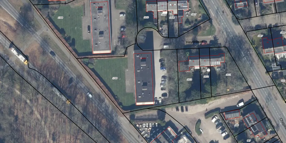 Het perceel waarop Haydnlaan 19 staat heeft een oppervlakte van 2250 m². Dit is een zeer groot perceel. De perceeloppervlakte wordt geregistreerd door het Kadaster. Gedetailleerde informatie over de maten van dit perceel kunt u vinden in het rapport Kadastrale kaart met maatvoering van Haydnlaan 19.